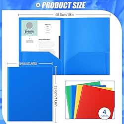 Packaging Information: this set includes 12 two-pocket folders in 3 styles, 4 of each style: two pocket folder, folders with 3 prongs and 3 hole punch pocket folder; Each style comes in 4 vibrant colors—red, yellow, blue, and green—with 1 piece per color; Designed to hold 8.5 x 11 inch letter sized paper, each pocket can store up to 50 sheets; The folders measure about 29.5 x 24 cm, making them ideal for organizing documents at home, school, or the office Three Styles to Meet Your Needs: this versatile set includes three types of folders to suit your organizing needs: the 3-hole punch folder is suitable for binding documents into ring binders, making it ideal for school projects or office presentations; The folder with 3 prongs holds loose sheets in place, good for storing important papers like contracts or reports; And the basic two-pocket folder offers a solution for daily use, such as sorting homework, handouts, or personal documents Reliable Material: our pocket folders are made of quality plastic material, strong and sturdy enough, safe and reliable, not easy to deform or break, hard to fade, which can support you for a long time Easy Organization: the outer edge of the plastic folder with pockets is heat-sealed, so you can insert or remove paper from the folder with pockets to add more paper when needed, suitable for working at home or displaying as crafts Wide Application: plastic folders are not only suitable for office use, but also for students, teachers or people who need to keep documents organized; They can be used for presentations, reports, projects, homework in schools, classrooms, homes, offices, etc