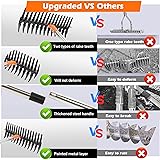 Heavy Duty Thatch Rake - 15 Inch Iron Dethatcher Rake with Reinforced Stainless Steel Handle, Efficient for Lawn Grass Soil Garden Yard