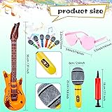 Octaday 56 Pcs Inflatable Rock Star Toy Set include 18 Blow up Microphones 18 Inflatable Guitars 18 Colorful Heart Shaped Sunglasses and 2 Air Pump for 80s 90s Musical Party Favors