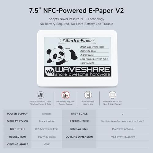 - Updated Version: The 7.5-inch NFC-Powered e-Paper V2 has replaced the previous NFC solution, and the associated app has been updated accordingly.