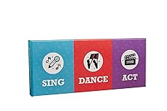 - Unleash your inner star in Sing, Dance, and Act! Draw a card and take on fun challenges—whether belting out a song, showing off your best dance moves, or acting out a hilarious scene. Players take turns performing while the rest of the group enjoys the performances and vote! Miss a beat, and you might end up being second best. Perfect for parties, family nights, and team bonding, this high-energy game will have everyone laughing, moving, and performing like never before. Can you keep up? Step into the spotlight and find out!
