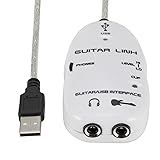 - [Simple Setup] Usb powered with ultra-low latency driver for easy connection to your computer. Solution] Easily turn your computer into a guitar amp and recording system. [ Design] Built with components for long-lasting use. [Premium Sound Quality] Enjoy sound output and monitoring with active speakers. [Versatile Connection] Connect your guitar to pc or for indoor and outdoor music creation. Specifications: Material: plastic Package size: 240 * 160 * 20mm / 9.45 * 6.3 * 0.79in Package weight: 60g / 2.12ounces Note: Due to the different display screen and light effect, the actual color of the item might be slightly different from the color showed on the pictures. Package List: 1 * Guitar To USB Interface Cable 1 * Software CD with Drivers 1 * User Manual