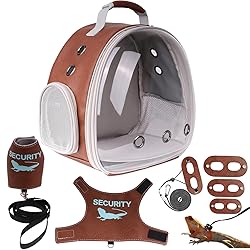TWO Secure Harness with Leash Set: Includes a security-printed vest harness with leash and 3-sized harness set, to keep your bearded dragon safe and secure during travel. Ventilated Carrier: This backpack carrier is made out of synthethic leash with soft feel and features ventilated mesh panels for optimal air circulation and visibility because of the clear front bubble window acts like space capsule astronaut. Convenient Design: Ergonomic backpack style allows for hands-free carrying of your reptile companion for vet and outdoor traveling, the bag size is okay to carry kitten, bunny, guinea pig and most size of bearded dragon. Spacious Interior: Roomy interior (approx. 12 x 8 x 16 inches) provides ample space for your bearded dragon. Travel-Friendly: Lightweight and compact, perfect for transporting your lizard on trips or to the vet.