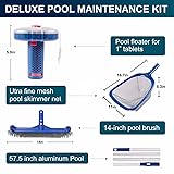 - POOLAZA Pool Cleaning Kit Above Ground & Inground Pools, Include Sturdy Pool Brush Head, Ultra Fine Mesh Pool Skimmer Net, 57.5'' Thickened Aluminum Pool Pole & Durable Pool Floater