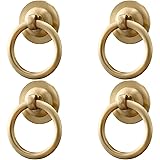 RZDEAL 4 Pack Solid Brass Cabinet Pulls Ring Drawer Pulls, Gold Kitchen Cabinet Handles Brass Brushed Drawer Handles