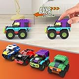 4 Pack Monster Truck Micro Brick Building Blocks Set, Pull Back Car Toy Vehicles Set, Birthday Party Favor or Gift for Teens Ages 8+ Kids