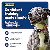 - The PetSafe Wireless Pet Containment System is a reliable, portable pet containment system that uses advanced wireless fence technology to create a secure, invisible boundary perimeter without digging. The circular boundary can be adjusted to cover up to 1/2 of an acre, offering a flexible and accurate wireless fence solution that sets up in just 1–2 hours. Simply plug the training transmitter in inside, place the included boundary flags, and customize the range to suit your yard or travel destination, perfect for RV trips or vacation homes. The included waterproof receiver collar features a tone-only mode and five adjustable static correction levels, making it easy to tailor the training to your dog’s temperament. Static-free reentry further reinforces positive behavior. The collar operates on a replaceable RFA-67 battery, which lasts 1-2 months, and includes a battery status indicator for added convenience. This adjustable collar is intended for dogs at least 6 months old weighing 8lbs+ and fits neck sizes from 6-28 inches. This multi-pet training system supports additional collars, allowing all your pets to enjoy the yard safely. With over 25,000 five-star reviews, the PetSafe Stay & Play Wireless Fence delivers a reliable, expert-recommended way to keep your pets safe, happy, and free to play. Since 1988, PetSafe has been driven by a simple belief: safe, healthy pets lead to happier lives for pets and their families. For over 25 years, we've been dedicated to enhancing the lives of pets and the people who love them, treating every pet as a cherished family member and delivering life-changing innovations designed to enrich every moment. With U.S. roots and a global reach, our vet- and trainer-recommended products are built for every pet and backed by exceptional customer support. From backyards to dog parks, we're on a mission to create fields of joy for happy, healthy, and safe pets.
