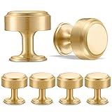 RZDEAL 6pcs Solid Brass Gold Cabinet Knobs, 1 Inch Round Cabinets Pulls for Kitchen Drawer and Dresser,Brass Brushed Finish