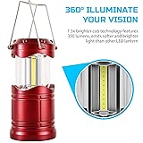 ULTRA BRIGHT & SAFE: Designed with 30 energy-efficient LED for 360 degree lighting (97 sq.ft coverage), the latest COB technology features 350 lumens, emits softer and brighter light than other LED lantern; Use 3 AA batteries (not included) RELIABLE CONSTRUCTION: Made of military-grade and water-resistant plastic, the durable, portable and lightweight build allows you to hang or carry it to anywhere, hard enough to resist external shock COMPACT & COLLAPSIBLE: Features foldaway handles for easy suspension and portability, collapsible to store when not in use; Pull up the handles to turn it on or control the brightness, no switches required PERFECT GIFT: Ideal gift for children, family or friend, survival kits for Hiking, Camping Trips, Emergencies, Backpacking, Fishing, Storms, Shop; Emergency kits for Car, Home, Outages, Attic, Garage, Backyard, etc. ENHANCED ERGONOMICS: Precision-engineered handle and lantern case designed for ergonomic perfection, ensuring a visually striking product that is not only comfortable to hold but also effortless to carry