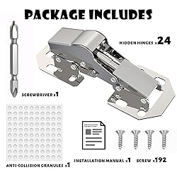 - BESTEEL 24 Pack Hidden Hinges Soft Close Surface Mount Kitchen Cabinet Hinges, Concealed Cabinet Hinges for Cabinet Doors Frameless,No Pre-drilled for Kitchen Cupboard, Surface Mount Hinges