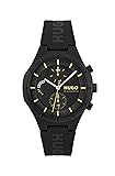 Casual and comfortable, the #LIT MULTI is a stylish addition to HUGO Watches’ #LIT range. Powered by a multifunction movement and crafted in lightweight TR90, it captures the HUGO attitude with bold, playful design elements. HUGO Men's #LIT MULTI with a stainless steel and black TR90 case, black dial, and a black strap. Quartz Multifunction: It’s a battery-powered watch that sends energy through a quartz crystal. It is typically built into three separate dials for the day of the week, date of the month and 24-hour time. Water Resistant: Up to 50m (165ft): Wearable for short periods of recreational swimming and showering, but not diving or snorkeling; 5 ATM. Caring for your timepiece: Your Hugo watch has been developed with meticulous attention to quality, function and detail. A maintenance interval of 3 to 5 years is recommended, in addition to any required battery replacement. Never open the watch yourself.