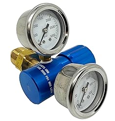 0-400PSI Performance Argon Regulator, 1/4" FNPT outlet Lightweight, Billet Machined Aluminum with BLUE ANODIZED finish CGA580 Brass Cylinder Connection Dual Chrome Gauges - Easy read 45CFM (Cubic Feet Per Minute)
