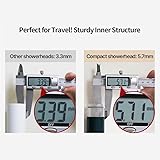 COMPACT DESIGN: Travel-sized shower head measuring 5.7mm in thickness, significantly more compact than standard 3.3mm models for ultimate portability TRAVEL READY: Includes waterproof carrying pouch for convenient storage and transport during trips COMPLETE PACKAGE: Comes with replacement filters and travel accessories for an enhanced shower experience anywhere