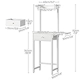 Rich Storage: The non-woven drawer of this vanity desk is like a helpful steward, neatly storing lipsticks, eyeshadows, and more. Extra top holds tall cosmetic bottles for easy access. The foldable panel expands the desktop, enhancing functionality Compact and Exquisite: With a 25.5"L x 11.8"W x 52"H size, this vanity table is made for small spaces. It fits well in tiny bedrooms, hallway corners, or closets, creating a cozy makeup spot and adding charm to limited areas More Details: Four adjustable feet can be slightly adjusted to level the vanity desk on uneven floors without scratching the floor. The anti-tip kit ensures this dressing table stays put even when accidentally bumped, giving you peace of mind Sturdy Structure: Thick tubes and particleboard combine to create a solid makeup vanity. The countertop can bear up to 110 lb. The smooth wooden surface is easy to clean and stays nice Easy Assembly: The parts are clearly labeled, and the manual is easy to read. Follow the steps and you can assemble the vanity quickly, even if you're a novice. For any questions during assembly or use, our after-sales team is ready to help you