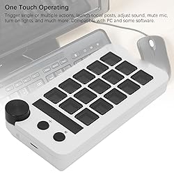 - [Multiple Actions and Compatibility] Trigger numerous actions, launch social posts, adjust sound, mute mic, turn on lights, and more. compatible with pc and software. [Dedicated Layouts and Dynamic Modes] Group commands into layouts and modes that switch profiles automatically based on applications. [Unlimited Commands and Macros] Bind a variety of commands and macros, customize images, and adjust tactile feedback for touch responsiveness. [Effortless Stream Management] Easily manage streams with shortcuts for multiple programs, customizable layouts make navigation intuitive. [Single-tap Controls] Quickly switch scenes, launch media, adjust sound, and convert keys into folders for infinite actions with a tap. Spec: Item Type: Stream Controller Material: ABS Function: Customized Keys Applicable Range: For Triggering Actions in Apps and Software Such as for OBS, PC Package List: 1 x Stream Controller 1 x USB Cable 1 x Instruction Manual How To Use: Install and use.