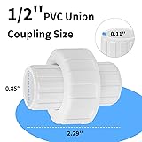 【Size Information 1/2" PVC union pipe fitting – Fit for 0.85 inch (21.4mm) OD Pipes, connecting two pipes more easily for future pipe cleaning、repair and replacement. 【Leak-Proof PVC Union】Built-in EPDM O-ring provides sealing to resist oil, water and some solvents. 【Premium Quality】Made of high-quality PVC, ruggedized and corrosion-resistant, long-lasting. 【Wide Application】This SCH40 PVC pipe union is perfect for both indoor and outdoor PVC pipe repairs, as well as outdoor irrigation or sprinkler systems. 【Easy Installation】Using only primer and adhesive, you can install easily, quickly and conveniently.