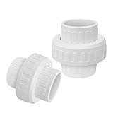 BOUYAO 2" PVC Union Coupling Pipe Fitting (Socket x Socket), 2 Inch PVC Adapter Schedule 40, EPDM O-Ring, White 2 Pack