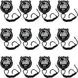 TOODOO 12 Pack Multi Function Digital Stopwatch Timer Bulk Sports Stopwatch with Lanyard Plastic Display Waterproof Date Time Alarm Timer for Coaches Fitness Referees