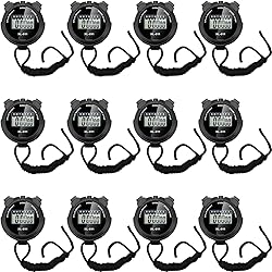 - Features: Nice and practical design: The stopwatch timer for sports is delicate and simple in appearance, bright and eye-catching in color, with a large display, making the data on the screen easy for you to see, owning practical functions, bringing convenience to your life. Easy and portable to carry: These stopwatches with lanyard are mini and lightweight for you to hold or carry. The round design will bring you a comfortable using experience, to control the time timely. You can store them in your bags, pockets, boxes, or others, saving your time and energy. Specifications: Material: plastic Color: black Size: as pictures shown Quantity: 12 pieces Package includes: 12 x Black stopwatches Note: Manual measurement, please allow slight errors on size. The color may exist slight difference due to different screen display. Winding risk may exist, please keep away from kids under 3 years old. The battery life is related to the frequency and length of use of the product. If the frequency of use is high, and one-time use long, the battery life will be relatively short.