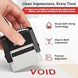 VOID rubber stamp features the word "VOID" in a bold, Red font Simply press and stamp instantly, It makes it convenient and less of a chore to mark items as "VOID", there is a large index window on the top of office stamps VOID, that shows what color VOID stamp is and the direction of the VOID stamp, so you don't confuse it with other office stamps This VOID stamp is essential for all businesses, retail shops, legal and accounting professionals who require efficient and minimal effort in copying documents The VOID stamp impression size is 9/16 x 1 1/2 inches, Pre-inked with vibrant, fade-resistant red ink that stands out on paperwork, This premium ink will not bleed through the page or make a mess of your work Our self-inking business stamps can be easily refilled with ink, Durable, ultra-long life, Save money and plastic