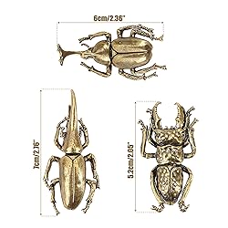 Exquisite Insect Art Set: Includes 3 realistic beetle figurines with unique horned designs—crafted to mimic real insect anatomy for decorative and collectible use. Each piece measures approx. 5.2–7cm (2.05–2.76 inches) long. Premium Solid Brass Material: Made from durable solid copper/brass with a vintage finish. These mini sculptures are heavy, firm, and resistant to breakage—ensuring long-term display without fading or deformation. Elegant Vintage Decor: The antique-style detailing blends seamlessly with bookshelves, mantels, tea tables, office desks, or shadow boxes. Ideal for lovers of natural history, vintage style, or curious oddities. Perfect Gift for Collectors: A thoughtful and unique gift idea for insect lovers, teachers, friends, or anyone who appreciates fine miniatures and unusual decor. Great for birthdays, holidays, or homewarming gifts. Important Note Before Purchase: This is a small-size decorative set (not toys). Each figurine is miniature-sized, intended for adult collectors or home decor. Please check dimensions carefully to avoid sizing-related returns.