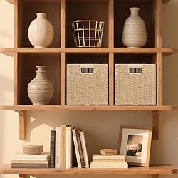 - Design Concept: This wicker storage basket features a sturdy metal frame as its core supporting structure. Surrounding this stable frame, artisans meticulously weave wicker with exquisite craftsmanship, creating a sturdy and reliable storage item. Whether it is used to organize sundries indoors or store items outdoors, it can perfectly fulfill the task, demonstrating outstanding practicality and adaptability. The body of the basket is square, simple yet elegant. Integrated handles are installed on both sides, which is an ingenious and thoughtful design. When users pick up or put down items from shelves or compartments, they can feel an unparalleled sense of convenience. During the handling process, it can effectively save effort, greatly enhancing the user experience. Handmade Weaving: Items made and woven by hand often possess a unique style and personality. Each piece incorporates the creator's creativity, emotions, and craftsmanship. Even when made by the same person, it is difficult to achieve complete uniformity. Therefore, it can better showcase a distinctive charm and meet people's needs for personalized items. It places great emphasis on details and quality. The creators will select high-quality materials and meticulously handle every step to ensure the quality and durability of the works. Compared with some mass-produced products, handmade items are often sturdier and more durable, and can withstand the test of time. Product: Quantity: 3 Pack Dimensions: 11×11×11 inches Weight per unit: 1.60 pounds Functionality: Foldable for storage This delicate small cube storage basket is versatile and flexible. It can be easily placed on a desktop, fits various types of shelves, and can also be incorporated into a closet. Whether in the living room, bedroom, wardrobe, cabinet, dormitory, pantry, bathroom, utility room, office, or even the corridor, this storage basket can perfectly adapt, efficiently organize the space, and keep every place tidy and in order.