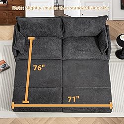 - Transform Your Space with Dual-Function Luxury Whether you choose the King (3-in-1) or Queen (2-in-1), this sleeper sofa solves 3 problems: --Limited space needing multifunctional furniture --Uncomfortable guest beds --Cluttered living areas Why Designers Love It: King Size Hero:Create a sectional-like lounge chaise for movie nights, then extend to 78.7" bed for overnight guests Queen Size Star:Maintain sleek 60" loveseat profile by day, instantly transform to spacious sleeper by night Game-Changing Wheels:Unique pull-out system requires 70% less effort than competitors’ lift-and-drag models Engineered for Real Life --10" Seat Density:Certified 50,000+ compression cycles (industry standard: 25,000) --Reinforced Pineapple Fabric:3x more abrasion-resistant than basic corduroy --BONUS:Stain-guard treatment included - spills wipe clean with damp cloth Dimensions That Work King Size Loveseat: 74"W x 34.3"D | Bed: 78.7"L x 74"W (Fits 2 adults) Queen Size Loveseat: 60"W x 34.3"D | Bed: 78.7"L x 60"W (Ideal for 1-2) Complete Your Setup Pair with matching pineapple corduroy throw pillows (sold separately) for a designer-approved look.