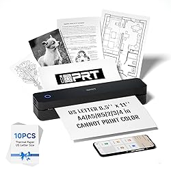 Ultra-Portable Design - The iDPRT portable thermal printer features a streamlined design, compact size, weighing only 1.4 pounds and measuring just 10.4 x 2.2 x 1.8 inches, making it easy to carry in your backpack, tote bag or briefcase, perfect for long commute times. Our portable document printer is a solid choice for anyone needing a reliable, portable printing solution. Great concept for on-go printing from anywhere needed, like if traveling for photos, work, business, office, home, car, or university.It great for business travelers, students, and remote workers. Inkless Portable Printer - Bluetooth printers use thermal technology - no ink, toner or ribbons are required. This not only eliminates the hassle of ink clogs and cleaning, but also makes it an eco-friendly choice. Bluetooth printers offer an affordable solution for everyday printing needs, allowing you to easily print documents such as recipes, forms, letters, homework, study materials and travel documents by simply selecting the document you want to print directly on your mobile phone. Universal Compatibility & Wide Printing Range - The thermal inkless printer is compatible with a wide range of OS, including iOS (for iPhone & iPad), Android, Windows, and Mac, OS.It supports a variety of thermal paper sizes, such as 8.5"x11" US letter and legal paper, A4, A5, and 4" - wide thermal paper. (Note: Portable printer is a thermal printer and only supports thermal paper, not support regular copy paper.) Easy To Use - The bluetooth thermal printer enables Bluetooth wireless printing via the mobile phone app "HerePrint". The printer can also connect to laptops and desktops via USB. When using a computer, just connect the printer via USB and then install the driver. (Note: Download the driver from iDPRT website on your computers.) Crisp Printing Quality & Long Battery Life - The iDPRT Bluetooth thermal printer, High-definition printing accuracy ensures that barcodes, text and simple graphics are clear and sharp, taking into account both printing efficiency and professional-level recognition requirements, and avoiding blurring problems caused by low resolution. The wireless printer comes with a built-in 2000mAh battery for continuous printing of up to 4 hours and 360 sheets on a single charge. The portable printer is suitable for home, school, office and vehicles.(Note:Thermal mobile printers are not suitable for complex image printing, and only support black and white printing.) How to Print on Phones - (1) Download the "HerePrint" app from the App Store or Google Play. (2) Turn on the inkless portable printer. (3) Enable Bluetooth on your phone and click the ‘+’ button in the app to complete the printer connection. Then select the file type to start printing. How to Print on Computers - (1) Power on the printer. (2) Connect the printer to your computer via USB. (3) Download the corresponding driver for the iDPRT MT610 Pro. (4) Select "iDPRT MT610 Pro" as your printer to start printing. Tips: Before downloading the driver, power on the printer and connect the printer to your computer via USB. What You Get: iDPRT MT610 Pro Wireless Printer, USB Cable, Product Manual, Free 10 Sheets Thermal Paper. Please refer to the product manual before using our printer.