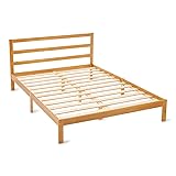 Amazon Basics Queen Bed Frame with Headboard, Solid Pine Wood with Bed Slats, Queen, Walnut