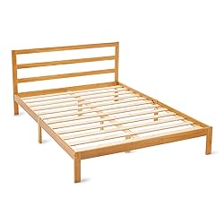 Classic Queen-Size Design: Clean, simple design suitable for master or guest bedrooms. The neutral style integrates easily with a wide range of decor settings and provides a stable base for everyday use. Construction & Materials: Made from solid pine wood with reinforced wooden slats and a center leg support system. The slatted headboard provides structural support and maintains frame stability. Under-Bed Clearance: Includes 8.3 inches of clearance underneath the frame, allowing space for storage boxes, bedding, or other items to help optimize room organization. Product Dimensions: Overall dimensions: 62 x 82 x 34.6 inches (W,L,H). Sized to fit a standard Queen mattress and designed to maintain a balanced footprint within the room. Support System: No box spring required. The slat system is designed to support the mattress directly. Max weight capacity: 615 lbs. Surface finish is designed for everyday use. FSC-certified wood (FSC N004130). Made with materials from well-managed forests, recycled materials, and/or other controlled wood sources.