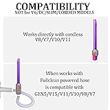 Compatible with:the Fullclean light pipe crevice tool is compatible with Dyson cordless vacuum cleaner V8 V7 V10 V11 NOT COMPATIBLE WITH CORDED MODELS: not for V6/SV09/SV03/V12/V15/GEN5,not for Slim,not for Dyson DC models,ball/canister type Dyson animal models,not for upright floor type Dyson models,not for any non-Dyson vacuum cleaners Brighten Dark Corners: Built-in LED light pipe illuminates hard-to-see spaces, making it easier to clean deep gaps, under furniture, and dark corners Slim Crevice Design: Narrow shape slides easily into tight spaces like between car seats, sofa edges, and baseboards Ideal for Car Cleaning: Perfect for detailing vehicles - reaches into air vents, seat gaps, and trunk corners effortlessly Easy to Use: Simply snap the attachment onto your Dyson cordless vacuum and press the power button,the light activates automatically,or connect with Fullclean powered hose then install on the vacuum cleaner Unlike Usual Tools: Combines precision crevice cleaning with a light pipe feature,no more vacuuming blind spots Additional features:when used with Fullclean powered hose,it can fit more models like V15 and Gen5 models,but still can not work for Slim and other models not listed