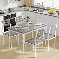 - 5 Piece Dining Table Set, Industrial Style Kitchen Table Set for 4, Dining Table and Chairs with Rectangular Table & 4 Chairs for Small Spaces Kitchen Apartment, Wash Grey