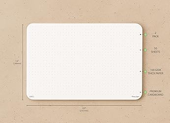 PREMIUM QUALITY PAPER: Crafted from high-quality, smooth paper to provide a luxurious writing experience. Perfect for professional use or personal projects. A5 SIZE: Ideal for larger notes, planning, sketching, and brainstorming with ample space to express your creativity.The spacing between the dots on the notepad is 5 mm, offering an ideal balance for writing, sketching, and structured planning. DURABLE CARDBOARD BACK SUPPORT: The built-in premium cardboard back support ensures comfort while writing, preventing bends and making it easier to write anywhere. VERSATILE USE: Suitable for dot grid journaling, note-taking, bullet journaling, sketching, and creative planning. Ideal for students, professionals, and artists. ECO-FRIENDLY & LONG-LASTING: Made from responsibly sourced materials that offer durability and sustainability. Perfect for daily use. SLEEK DESIGN: Clean and minimalist design that fits into any office, school, or creative environment. Great for gifting to creatives and professionals alike.