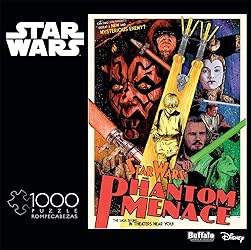 • This 1000-piece 19.75 x 26.25 inch interlocking Star Wars(TM) jigsaw puzzle for ages 14+ is titled “Mysterious Enemy”. Relive the excitement of Star Wars’ return to the big screen twenty-five years ago with this vintage poster for Star Wars: Episode I – The Phantom Menace, featuring Anakin Skywalker, Darth Maul, Queen Amidala, Qui-Gon Jin and all your favorite characters from the film that launched the prequel trilogy. Every Buffalo Games jigsaw puzzle is manufactured from recycled puzzle board. A precision cutting technique guarantees that every piece will fit soundly with the company's signature Perfect Snap™. A bonus puzzle poster is also included so that you have a handy reference of what the completed puzzle should look like while you put yours together. © & ™ Lucasfilm Ltd.