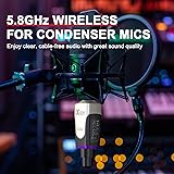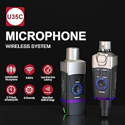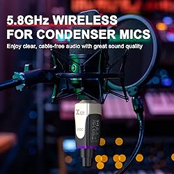 [5.8GHz Wireless Operation] - Enjoy interference-free, high-fidelity audio with the advanced 5.8GHz frequency band, ideal for congested RF environments. [Auto Channel Scan] - Effortlessly locks onto the clearest available channel for a stable, seamless wireless connection every time. [Designed for Condenser Mic] – Delivers 12V/48V phantom power, making it compatible with professional condenser microphones for crystal-clear sound quality in live performances, studio sessions, and presentations. [High-Resolution Audio] - Transmits 24-bit/48kHz digital audio with 5ms ultra low latency and 100ft frequency response for studio and live applications. [What You Get]- Xvive U35C Transmitter x1, Xvive U35C Rerceiver x1, USB Cable x1, Bag x1 [Using Tips] - Never plug single-ended(unbalanced) or dynamic microphones into U35C, as they can be permanently damaged if phantom power is applied to them.