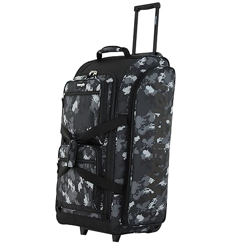 - Wrangler 30" Upright wheeled rolling travel duffle bag with more packing space than luggage. Best use for long vacations and family trips.
