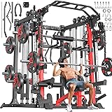 Smith Machine with Cable Crossover System, Multi-Function Squat Rack Power Cage for Home Gym, Power Rack and Packages Weight Sets