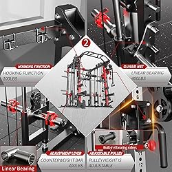 - L05 Smith Machine Multi-Purpose Squat Rack with Cable Crossover System, It can meet your different training purposes, such as wide grip/near grip pull-ups, squats, deadlifts, bench presses, squats and push-ups. It helps you perform a full body workout at home, sculpting the muscles of your arms, shoulders, back, buttocks, chest and abdomen.Optional Additional Training Attachments, Matching Weight Bench, Olympic Barbell Weight Sets,for Garage and Home Gyms.