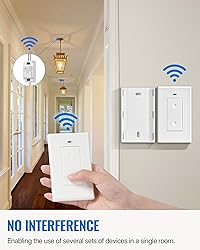 Stable Range with No WiFi: The WILAWELS wireless light switch works through doors and walls up to 100 feet line of sight indoors; no interference with other electronics. The wireless light switch and receiver kit can be used right out of the box for hassle-free on/off control of your lights, lamps and fans without complicated WiFi or smart app setting Peel and Stick Mount: You can secure the remote control wall switch anywhere convenient with the included adhesive strips or hardware, or easily slide the faceplate from the mounting bracket to move around the room; 12V 23A battery included. WILAWELS wireless remote wall switch and outlet makes lighting easy 2 PACK Wireless Remote Light Switches: Comes with 2 wall switches and 2 receivers for many people to remotely control lights. The remote control light switches are FCC-certified for quality and rated at 10A, 1250W, supporting 120V Wireless Remote Control: With a single tough of one button, you can remotely control lighting without electrical wiring or hiring an electrician. WILAWELS wireless remote light switch offers a caring choice for the elderly, pregnant women, or those with limited mobility Programmable and Expandable: Enhance your setup with pre-programmed WILAWELS wireless light switch kit (same model only). No pairing or set up, just plug in and enjoy a powerful control to remotely light up the darkness with our electrical plug in on off power switch
