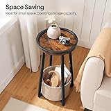 HOOBRO Small Round Side Table, 2-Tier Round Sofa End Table, Compact Nightstand with Cotton Linen Storage Basket, for Small Space, Living Room, Bedroom, Dorm, Rustic Brown BF183BZ01