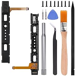 【Compatible model】--- Compatible with Nintendo Switch/Switch OLED JoyCon Controller ( Not for Console slide rail). Please make sure the item is the right model you need before purchasing. 【What you Get】--- 1 x Right Side Rail, 1 x Left Side Rail, 8 x screw for Joycon, 1 x Metal Bit Driver, 2 x Precision Bits(1 x Phillips #000,1 x Tri-point Y000), 1 x Metal Tweezers, 1 x Spudger, 1 x Opening Pick, 1 x Brush. 【Easy to Repair】--- We provide all the accessories for this repair, you can repair it by yourself in a few minutes, then your controller can work again. 【Apply for】--- Fix the slide rail damaged, not touch sensitive, or slide rail too loose etc. 【Premium Quality】--- All of our replacement parts are inspected to ensure that you receive them in perfect condition.