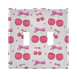 Burbuja Cute Cherries with Pink Bows Toggle Light Switch Wall Plate Cover, Decorative Wall Plate, Screws Included, 2-Gang