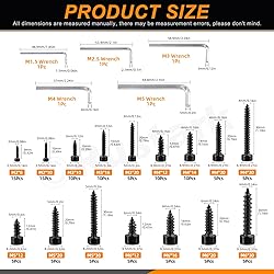 - ★Rustark 16 Sizes Black Hex Socket Cap Head Self Tapping Screws with Hex Wrench 304 Stainless Steel M2-M6 Socket Cap Wood Screws Metric Hex Drive Head Cap Self Drilling Screw for Wood Machinery ★ WHY CHOOSE US? ❤You'll receive a 125pcs 16 sizes black hex socket cap head self tapping screws kit with hex wrench. Sufficient quantity and rich sizes to meet your different needs in daily life. ❤These hex head cap screws made of 304 stainless steel with black finish, which are rust and corrosion resistant, sturdy, withstand any bad environment, durable for long time use. ❤Suitable for joining most woods, boards, kitchen worktops, cupboards,speaker, trumpet, fittings, sports equipment, beds, tables, chairs, and so on. ❤The socket head cap screw in various sizes are packed neatly in a separate compartment in a transparent storage box, making it easy to get the right size you need. ★Specifications: ✯Product Type: Hex Socket Cap Head Self Tapping Screws Kit ✯Quantity: 125Pcs ✯Material: 304 Stainless Steel with Black Finish ✯Color: Black ✯Size: M2x8mm, M2x10mm, M3x10mm, M3x16mm, M3x20mm, M4x12mm, M4x14mm, M4x20mm, M4x30mm, M5x12mm, M5x20mm, M5x30mm, M6x12mm, M6x16mm, M6x20mm, and M6x30mm; Please see the 2nd picture for more size information. ★What You Get: 15pcs------M2x8mm hexagon socket head tapping screws 15pcs------M2x10mm hexagon socket head tapping screws 10pcs------M3x10mm hexagon socket head tapping screws 10pcs------M3x16mm hexagon socket head tapping screws 5pcs------M3x20mm hexagon socket head tapping screws 10pcs------M4x12mm hexagon socket head tapping screws 10pcs------M4x14mm hexagon socket head tapping screws 5pcs------M4x20mm hexagon socket head tapping screws 5pcs------M4x30mm hexagon socket head tapping screws 5pcs------M5x12mm hexagon socket head tapping screws 5pcs------M5x20mm hexagon socket head tapping screws 5pcs------M5x30mm hexagon socket head tapping screws 5pcs------M6x12mm hexagon socket head tapping screws 5pcs------M6x16mm hexagon socket head tapping screws 5pcs------M6x20mm hexagon socket head tapping screws 5pcs------M6x30mm hexagon socket head tapping screws 1pcs------M3 nickle plated wrench 1pcs------M4 nickle plated wrench 1pcs------M5 nickle plated wrench 1pcs------M1.5 nickle plated wrench 1pcs------M2.5 nickle plated wrench Total: 125pcs ❤Warm Tips: -If you come across any questions or problems, please feel free to come to us. We will solve it for you as soon as possible!