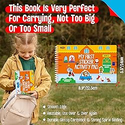 Develop Fine Motor Skills: This game set comes with a dry-erase pad and 100+ reusable stickers. It is designed to help children strengthen fine motor skills, hand-eye coordination, and spatial awareness as they peel, place, match, trace, and solve puzzles. Each activity encourages focus and precision, making learning both engaging and beneficial for early development. 18 Sticker Activity Pages: The sticker activity section includes three levels of play to support growing abilities: Free Sticking, Outline Matching, and Instruction-Based Placement. Each level gradually increases in challenge, helping children build confidence as they develop creativity, spatial reasoning, and problem-solving. With 100+ reusable stickers, children can enjoy endless creative and educational fun. 12 Mini Game Pages: Except for sticker scenes, the book includes 12 brain-boosting puzzles such as tracing paths, shadow matching, counting games, spot-the-difference, and more. These activities help improve logical thinking, concentration, early math skills, and more. Perfect for road trips, airplanes, car rides, restaurants, and quiet learning time. Bright-colored & Eye-catching: Each page features cheerful illustrations, bold colors, and fun themes designed to capture children’s attention. The engaging scenes invite kids to explore every page and stay entertained at home or on the go. Premium, Reusable & Erasable: The stickers are reusable, easy to peel, and leave no residue, allowing kids to create scenes again and again. The pages themselves have a dry-erase surface, so children can practice activities repeatedly simply by wiping them clean.