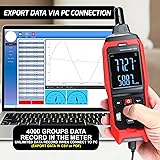 ✅【3 in 1 Tempeareture Humidity Measurement】The temperature and humidity monitor simultaneously measures temperature and humidity with Wet Bulb (WB), and Dew Point (DP) measurement, ideal tool for HVAC, laboratories, greenhouses, and industrial applications ✅【4000pcs Data Record&Export】The humidity and temperature meter stores up to 4000 sets of data and UNLIMITED data recording while connecting to PC, supporting data export in CSV via PC connection, compatible with Win7, Win8, Win10 and Win11 ✅【High Precision】The humidity tester is equipped with high precision chip sensor, the Temperature(DP/WB) measurement range is -40°F - 176°F(-40℃ - 80℃) with ±1°F accuracy, the humidity measurement range is 0 - 100%RH with ±3.0%RH ✅【High/Low Alarm】The thermohygrometer features upper and lower limit settings with buzzer and light Indicator alarms to alert users when thresholds are exceeded, you may adjust the thresholds according to your demand ✅【MultI-Functional】The hydrometer humidity meter designed with data HOLD/MAX/MIN/AVG, adjustable recording intervals and ℃/°F switchable; Perfect for warehouses, homes, offices, schools, businesses, HVAC systems, greenhouses, cigar humidors, quality control systems, laboratories, and etc.