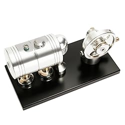 Material: made of H59 brass and 6061 aluminum alloy with aluminum boiler, brass cylinder and piston and aluminum base. Features: integrated steam channel in the base, cylinder swing structure, crankshaft rotation drives the piston and cylinder assembly to swing left and right. Power method: boiler is heated with water and then alcohol, steam drives the piston to work. Educational significance: perfect for engine enthusiasts and physics initiators, helps to understand the working principle of the steam engine. Brand: ENGINEKITOR, a trusted brand of miniature engine models.