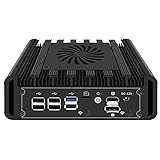 - Product Highlight -Inter Alder Lake N150 4 cores 4 threads with inter UHD graphics, TDP 6W. -2xInte 82599ES 10G SFP+ ports, 3xInte i226-V 2.5G RJ45 LANs, 1xUSB3.2 Gen1, 5xUSB2.0. -1xDDR5 SODIMM non-ECC laptop ram slot, support 4800MHz. -Support 1xM.2 2280 NVMe/PCIe3.0x1 SSD. -1xHDMI2.0, 1xDP support 2x4K UHD video display. -AT/ATX model support Auto power on function, can be opened or closed by moving jumper on motherboard. -Support uEFI BIOS, AES-NI, ESXI, PVE, Watchdog, Auto power on, RTC, PXE boot, Wake-on-LAN etc. -Low consumption TDP and can be mounted back of monitor by VESA bracket(optional to buy). -Innovation: It is flexible to change between fanless system and fan system. A fan built in solid aluminum case(size 177*125*54mm) with high tooth fins get much better heat dissipation to improve CPU performance significantly, sound of the fan is low. You can unplug fan pin off motherboard to make it fanless system if you want silence totally. Package List 1xMini PC 1xPower Adapter 1xPower Cable