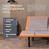 【Perfect Match – Designed to Work Together】This bundle includes a top split queen adjustable bed frame and a top split queen mattress, engineered to complement each other seamlessly. No more guessing compatibility—this set is built for perfect alignment, optimal performance, and personalized comfort on both sides. 【Dual-Adjust Comfort – Independent Controls for Couples】Enjoy full adjustability on both sides of the bed. Raise the head or foot section separately with your own wireless remote, ideal for different sleep needs. Whether you're relaxing, reading, or sleeping, find your perfect position without disturbing your partner. 【Premium Mattress – Pressure Relief & Cooling Comfort】 Included 12" mattress features a multi-layer design with memory foam for contouring support and motion isolation. Cooling fabric and breathable layers help regulate temperature, keeping you cool and comfortable all night long. 【Smart Features for Modern Living】USB charging ports on both sides, underbed night lights for added safety, and silent motors for smooth transitions. Adjustable legs let you set the bed height to your preference—either 8" or 11.4". It’s convenience, comfort, and tech-savvy design all in one. 【Easy Assembly & Reliable Support】The sturdy steel frame is easy to assemble with included instructions—no tools or extra help required. The mattress arrives compressed for easy handling and expands fully in just a few hours. Enjoy long-lasting durability, support, and restful sleep from day one.
