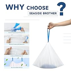 High-Quality Leak Proof Material: Seaside Brother commode liner is made of thickened medical-grade LDPE material, which is able to bear high load-resistance to tearing and prevent liquid leakage. There is no need to clean the commode bucket, and you can enjoy a clean, fresh and hygienic environment Easy to Use: Each disposable commode bag is folded separately and stacked neatly in the packaging box. You no longer need to worry about tearing the commode liners. You can take the bedpan liners from the box with just one hand. Our commode liners for bedside commode are designed for convenience, especially for people with inconvenient hands or inflexible fingers Value Pack: The package contains 50 disposable drawstring toilet liners, absorbent paper is not included. If you are looking for absorbency, search for Seaside Brother Commode Liners with Absorbent Pads, which includes our commode liner bags and super absorbent commode pads No More Smelly: Bedside commode liners disposable can keep the commode pails clean at all times. After use, simply remove the liner from the commode chair, tie the drawstring to seal it and dispose like a regular trash bag. No more odors are emitted into the environment, providing you with reliable protection Universal Size: Our portable toilet bags measure 20.8 x 15.7 inches and are suitable for all standard portable commode, adult potty chairs, portable toilet for adults, bedside commodes for seniors, and camping toilets
