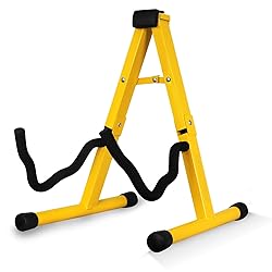 5 CORE Guitar Stand A Frame Shape w Soft Foam Arms Non Slip Rubber Supports Acoustic Electric Bass Ukulele Banjo Foldable for School Studio Stage Concerts Yellow - GSS YLW 1PC